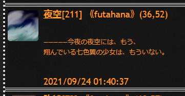 というわけで四人目のブーケ生還者となりました、No.211のシノオリちゃんこと本読海 詩ノ織ちゃんでありました……交流控えめでおそらのうえをひたすら飛び回っていたプレイングでした!
