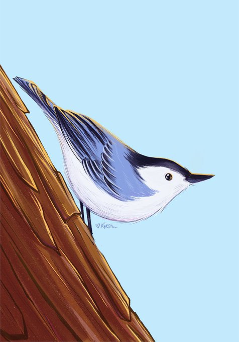 Hello #FlockOfArtists! I'm Kyrstin, I got into birding 2ish years ago thanks to @thehorsepuppy! While tits and juncos are my favorites, here's a Puffin, White-breasted Nuthatch, Prothonotary Warbler, and a pair of Mourning Doves. 💖