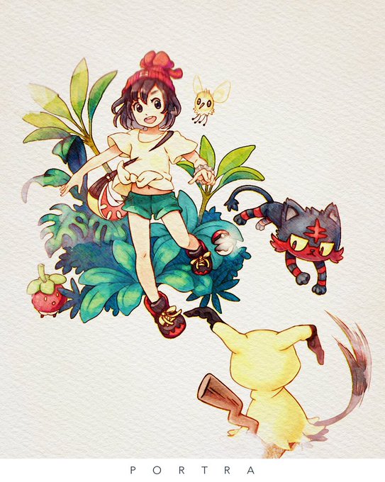 ミヅキ描けた 葉っぱたいへんだった リーリエとアセロラも描きたい #ポケモン #サンムーン
