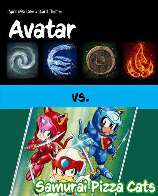 Poll is open for April's sketchcard theme on Patreon: Avatar vs. Samurai Pizza Cats