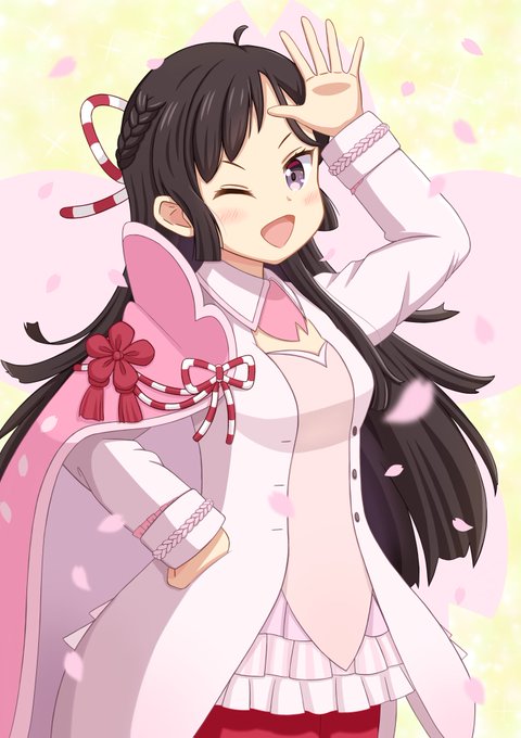 「あなたの町のかけつけ一本」 おまもり桜!! 魔法少女★千代田 桜── ただいま見参っ!! 🌸両手ポーズはアニメ仕様。マントの飾りは原作とアニメから想像してみました🌸 #まちカドまぞく #ファンアート #イラスト