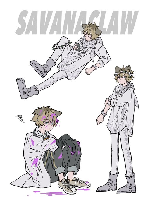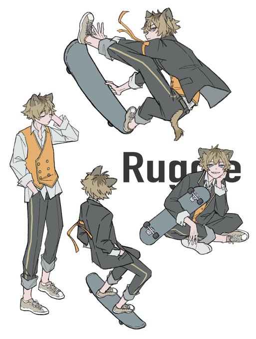 いろんなラギー先輩。 スケボー上手そうでたまに錬金術派手に失敗しそう。 #ツイステファンアート