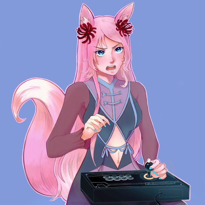 @SarinaPenguina Howdy, my name is Aikyuu Yufuhen! A fox goddess who loves fighting games and in her spare time enjoys singing and drawing. ❤️ I like playing Blazblue Central Fiction the most and Tekken 7. I have played a lot of other Anime Fighters as well like UNI and Guilty Gear! (ノ◕ヮ◕)ノ*