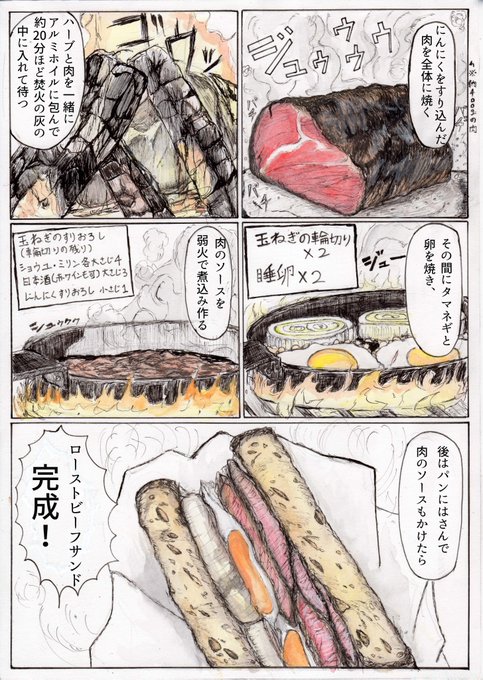 褪せ人と自灰が野外ご飯作る漫画完成しました。相変わらず何時ものアナログでサイズがわからず見辛いかもしれませんがよろしくお願いします。