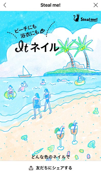 お仕事のお知らせです〜🌴 LINE MOOK「Steal me!」6/28配信号 「WE LOVE サマーネイル!」特集の扉イラスト、手のイラストを描かせていただきました。