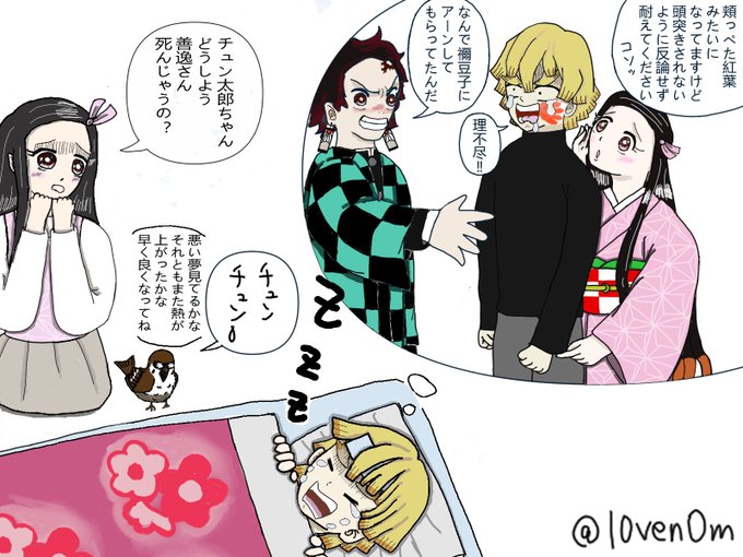秋雨に打たれて熱が出たためお昼寝しちゃったその日暮らし逸。本人がさつまいも粥🍠作って待ってくれてるのに、夢の中でアハハのウフフ😆早く起きなきゃ帰っちゃうよぉ💦