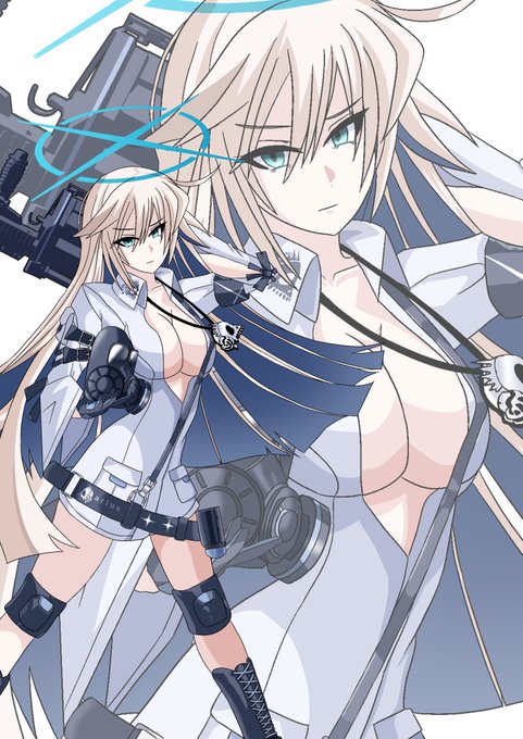 みたいな感じですかね。2枚目はマスクの付け方とか、コート? 無しの差分です。 #ブルアカ #BlueArchive