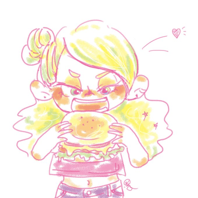 #イラスト #illustration 🍔 下のバンズを支える為の 親指めっちゃ長そう🙋