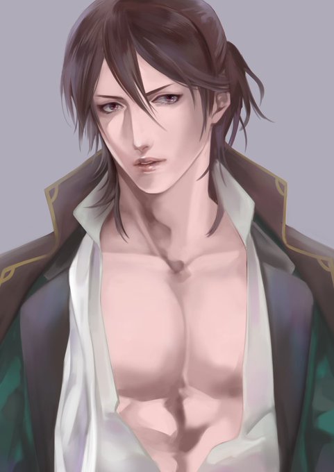 しらすさん(@shirasu_36)の線画を塗り絵しました~😊😊差分の方!!めっちゃ塗りごたえありました…筋肉…ありがとうございました😌塗りすぎた