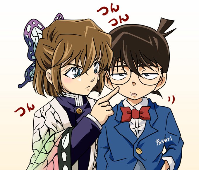 『これは人と人との距離を近くするための'つんつん'っていうんですよ~』って忍ちゃんが🦋 昨日の鬼滅ひきずってます… #名探偵コナン #灰原哀