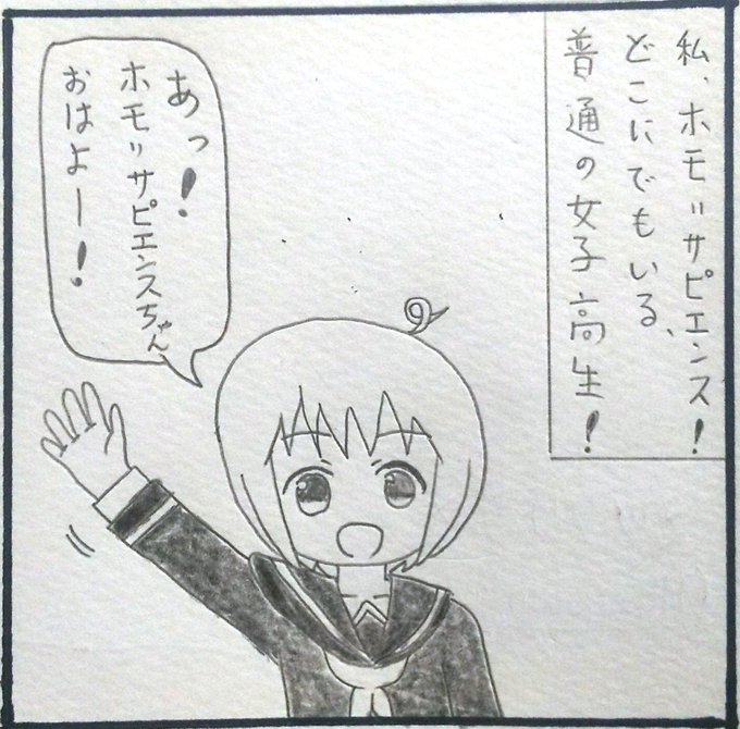 マサラタさんのツイートが全部消えちゃってて悲しいので、マサラタさんに頂いたファンアートに影響を受けて描いたサピエンスちゃんをあげます…