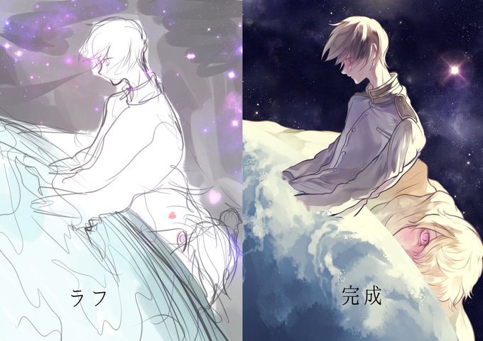 #皆さんラフと完成絵を見せてください グリザイユで描いてます。