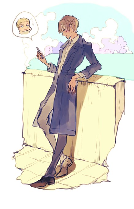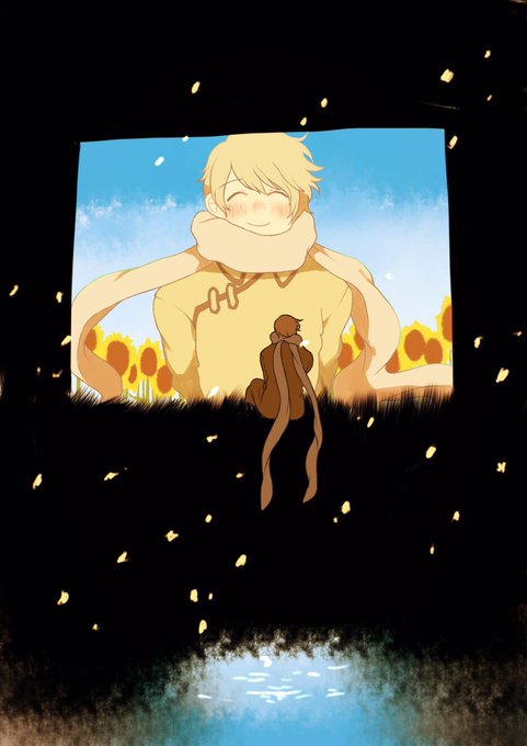 @hetaknb #APHコンビ版深夜のお絵描き60分一本勝負 ヒマワリ姉弟+ヤンデレ兄妹 『ありがとう』 マフラーを巻いてくれて