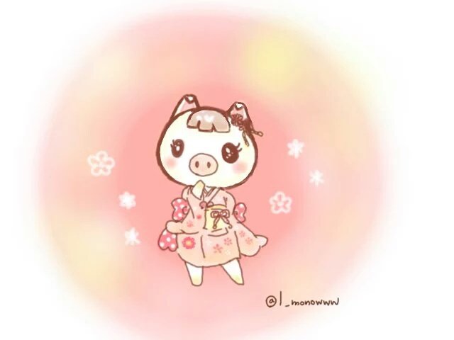 (@aya_tarokichi)さんへ〜( ˘ω˘ ) 豚さん住民さんからお任せチョイス ルーシーちゃんです(*´ェ`*) 新年らしく花柄の着物を着せてみました〜( ˘ω˘ )