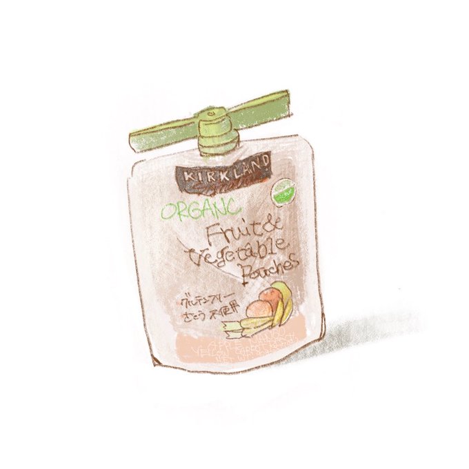 本日の落書きは、たまにうちの子に飲ませているコストコのフルーツ&野菜パウチです(大容量パックで一個70円台くらい?) 書き終わったところで死ぬほどグズられて暫く格闘していた。途中一回キレてしまった(懺悔) #コストコ #落書き #育児