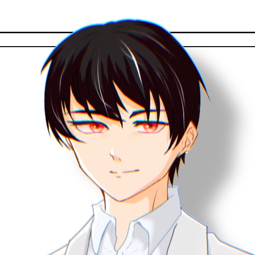 @Shino_satu ありえんことにこの4枚同一人物 代理ちゃんです 服は4枚目が描きやすいかと、 黒パーカー白シャツです 下はいつも適当← 黒髪短髪で目が赤です