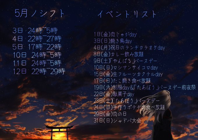 前半のシフトとイベント イラスト:沈めよ
