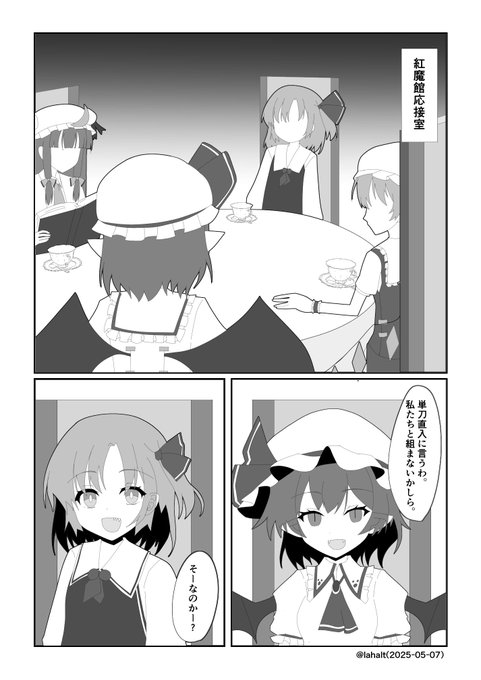 レミリアとルーミアの話(1/2) コミュニティではリプライツリー表示されないようなので掲載します。すいません。 ※二次創作要素強めです