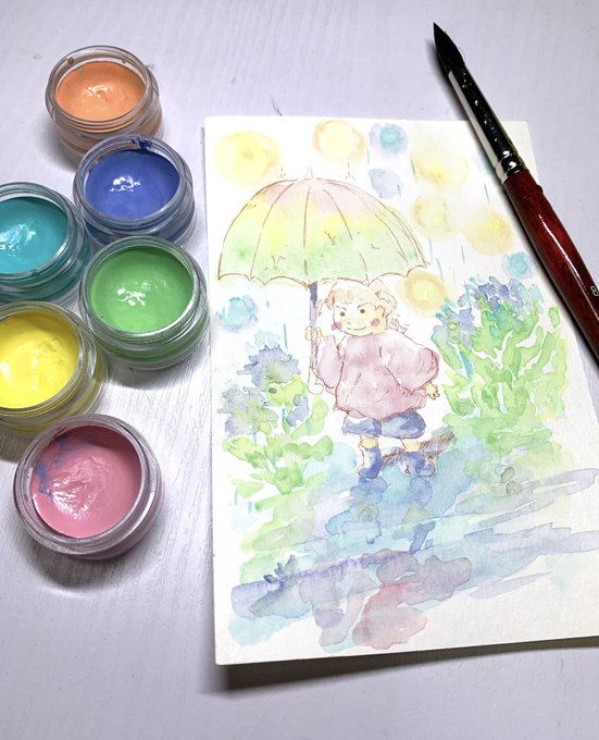 今日の落書き。 マカロン固形水彩😊