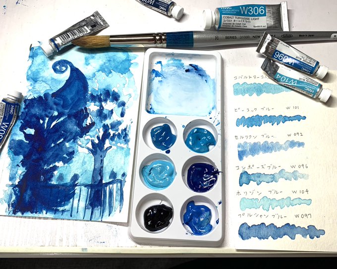 お気に入りの「青」だけを集めたパレットでビャーーっと青い絵を落書きしました🟦