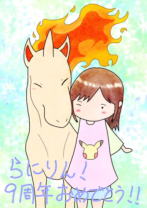 実は推しポケモンのギャロップと一緒に、かっわいいお祝いイラストを描いていただきました(*´з`)♡ すとろん(ストロボさん@strobo210)ありがとうーー!! かわいい…癒される…( ˘ω˘ )!ピカTもすごく好きです…