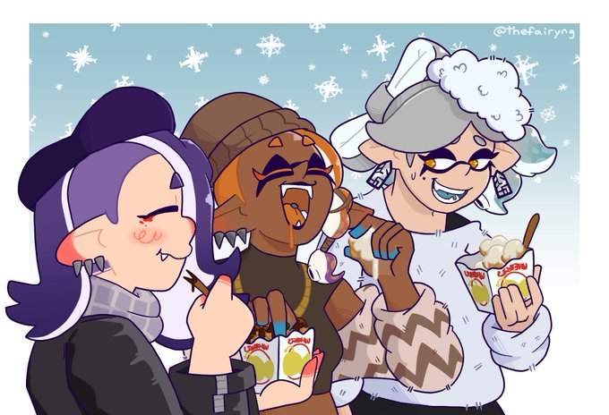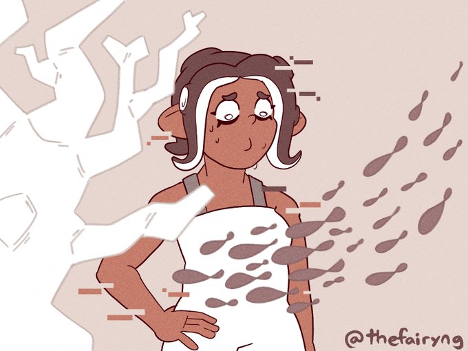 i doodled famous tableturf battle champion and commentator showers™ (/hj) after someone in the tableturf server pointed out that i gave marie one of their lines on my last mrvr art lmao