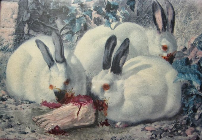 Rabbits, by American artist Katherine Rutter. Katherine Rutter has always included strong themes like life and death along with the physical and emotional complexities that she witnessed as a child growing up in a small farm in Arkansas.