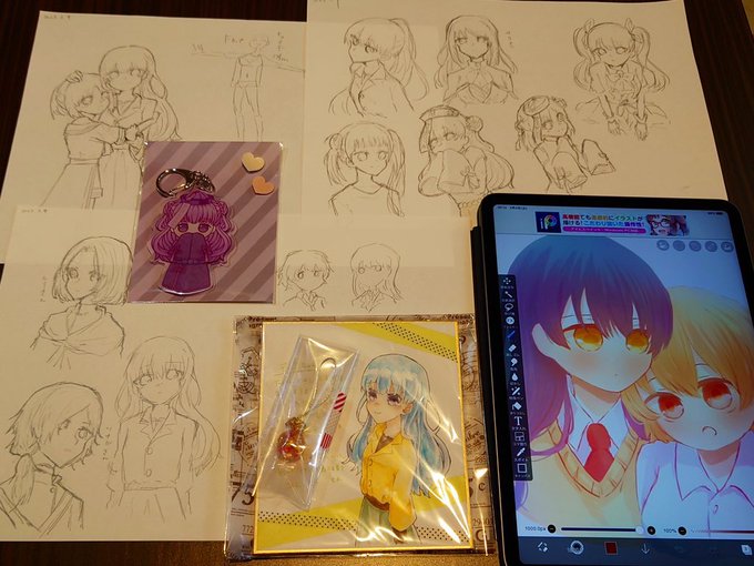 ヒユちゃん色紙とグロリオサ概念ストラップもらったり、ヒユリのキャラいっぱい描いてもらった!とかちゃんの絵はほんと可愛い😭