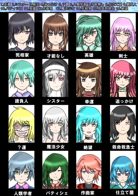 #無苦論破 @mukyu772 こういうのはすぐやる人間なので。ハートがついてるのが特に気になる子。 え、主人公?ヒーロー(仮)かデバッガー(仮)か幸運(仮)じゃないですかね(多い)