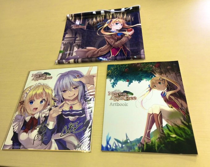 Newton And the Apple Treeのキックスターターを国内からご支援頂いた方にはラプラシアンから直接発送する運びとなりました。非売品3点セット。英語版アートブックは米国でも刷られていない貴重品で、霜降版のメインビジュアルのラフとか載ってます。大変お待たせしました!本日発送します。