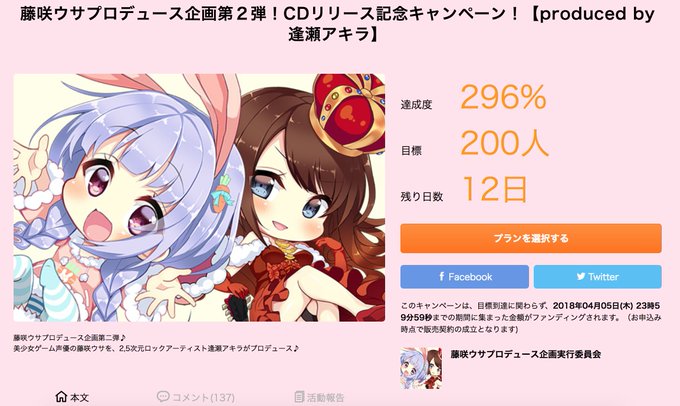 逢瀬アキラさんが手がける『藤咲ウサプロデュース企画第2弾』にて霜降がSDイラストを描いています!支援企画では達成率300%目前と、かなりイイ感じにアレしてる模様。