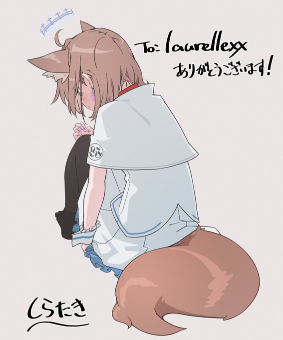 Skebより、しらたき様@sirataki_umaumaに描いていただきました! もじもじしてる後ろ姿がとても可愛い....🥰 なにを考えているんだろう?