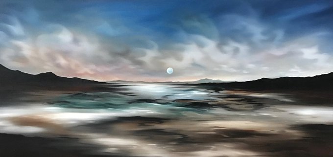 Western Moon 20x20” oil on canvas made a few years back, I still love the moving sky and dreamy feel. @SaatchiArt @FineArtConnoiss #fineart #paintings #landscapes #dreams