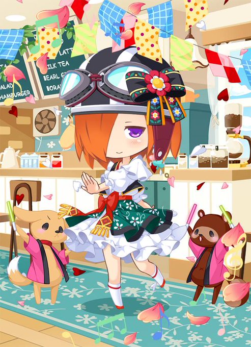 踊る看板娘というか。 服に合う髪飾りがあって良かった。 #フェアドル