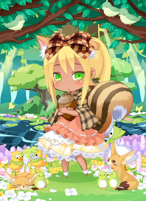 森の少女という感じに。 今風にプリンの頭飾りがあれば使いたかったけど、ケーキしかなかったので、まともに纏めざるを得なかった。 #フェアドル