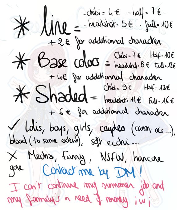 Opening sketch emergency commissions ;w; 'Cause my family's in need of money-