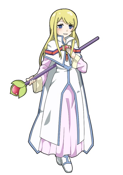 フィウス修正しました 表情ちょっと整えて武器の杖を持たせた😉 杖のデザイン中学の頃から変えてないから、ちょっと服装と似合わないかな?