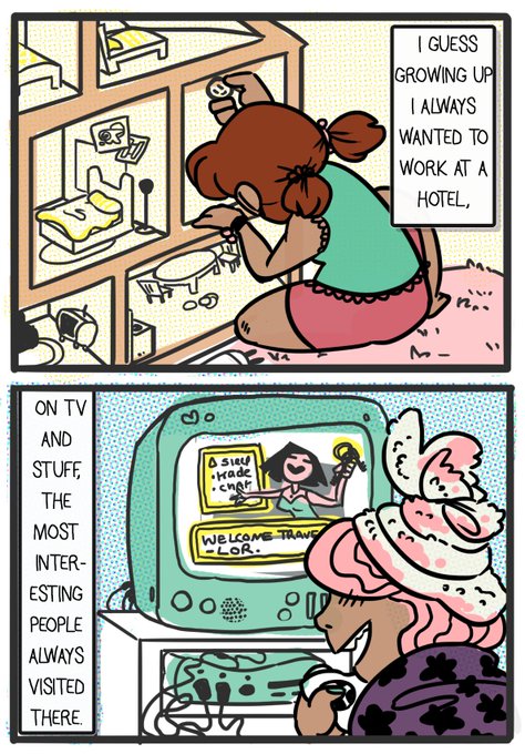 !! The first of a few prequel comics about the hotel and your boss in my upcoming game Breeze Inn!