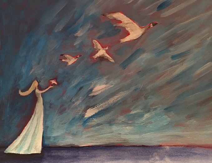 Another painting inspired by a Mary Oliver poem. This time, “Wild Geese.”