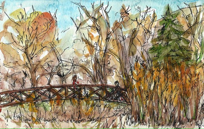 #dailysketch from last week, fall colors in Kin Coulee. #Urbansketch #medicinehat