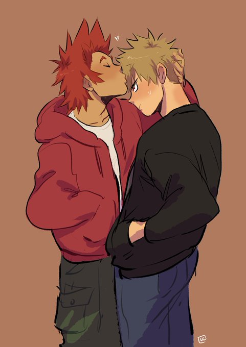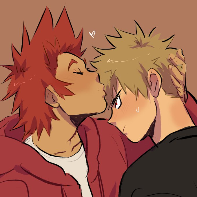 my first bakushima fanart and it's kirishima patting a bakugo who is biting a table out of anger 😭