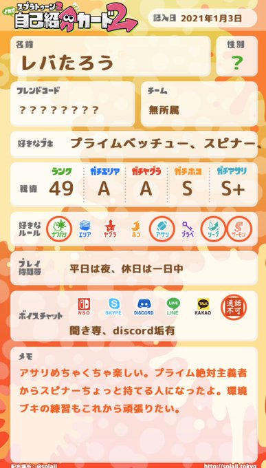 【成長進捗メモ】 ヒビ3つで泣きそうだったけどアサリS+帯いけた! エリアはこれ以上ウデマエ上がる気配ないからアサリとホコを頑張りたいなぁ。 ブキ練リグマ付き合ってくれる友達増やしたい。 #スプラトゥーン2してる人と繋がりたい #スプラトゥーン2自己紹介カード