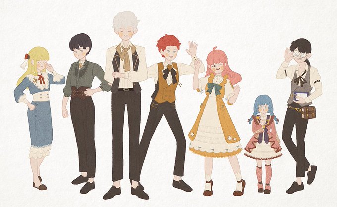 벨테인 특별조 엔피씨들 예쁜 아이들에게 예쁜 옷을~ 처음에 그릴 때 한줄로 쭉 세울 생각을 안 하고 그렸더니 각도가 다 달라서 우습다😄