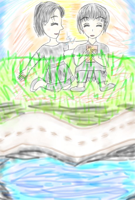#オリジナル #イラスト #描いてみた #デジタル #淡い色 #絵画 #親友 #光 #影 合計で約2時間半程、緑色の横線が気になって工夫しました。終了しとこう🥺 https://t.co/kuKZpXkkiK