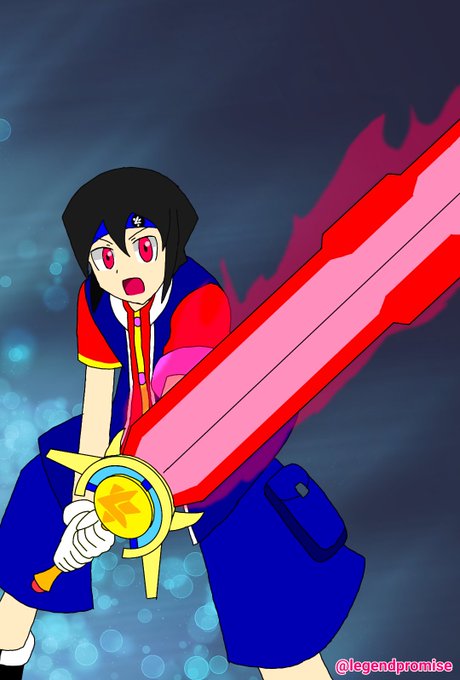 ペンダントのメダルをトリガーに封印解除した大剣。彼が内包する想像力のエネルギーが焔のように刀身から溢れ出ている。それは同時にエネルギーがだだ漏れであり、レジェの力を大きく消耗する諸刃の剣。彼の瞳は普段よりも更に紅く輝く。