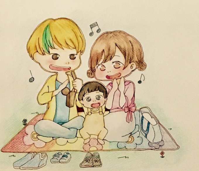 しばなん家族描いてみた。 毎日幸せそうで見てて楽しくなります。