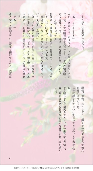 ーー目の前の花束も、その微笑みも。心底愛おしいと思えるのは、あんたのおかげだから。
