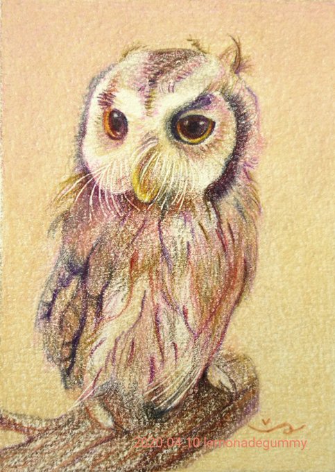 色合いを意識しながら、ふくろうのATC原画を描きました🦉