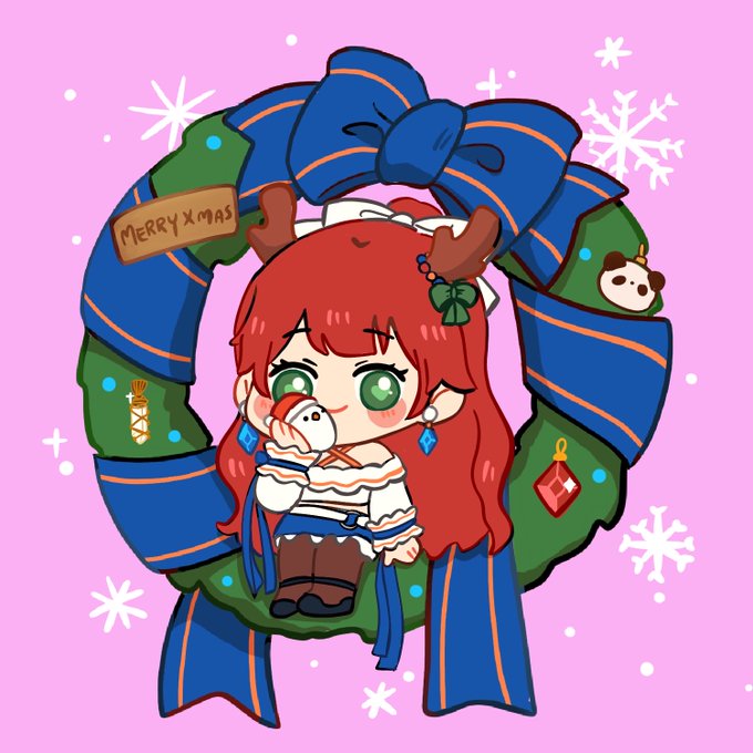 聖誕花圈系列圖 邊畫邊覺得很幸福 畫了顆顆莓莓跟米茲~ #顆顆fanart