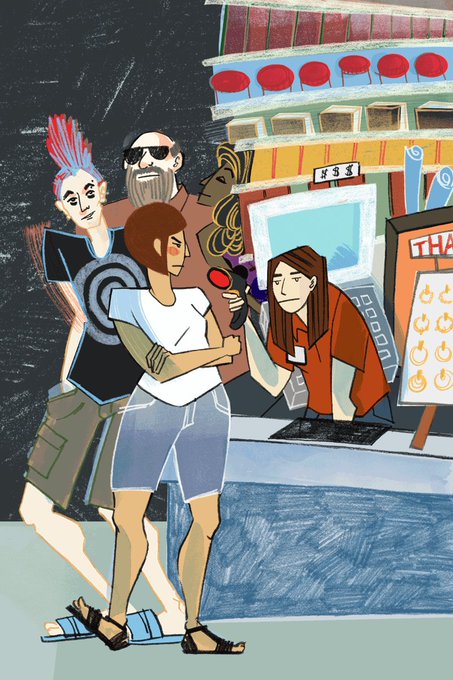 I made gifs based on summer jobs I had, here's working at an arts & crafts store as a cashier